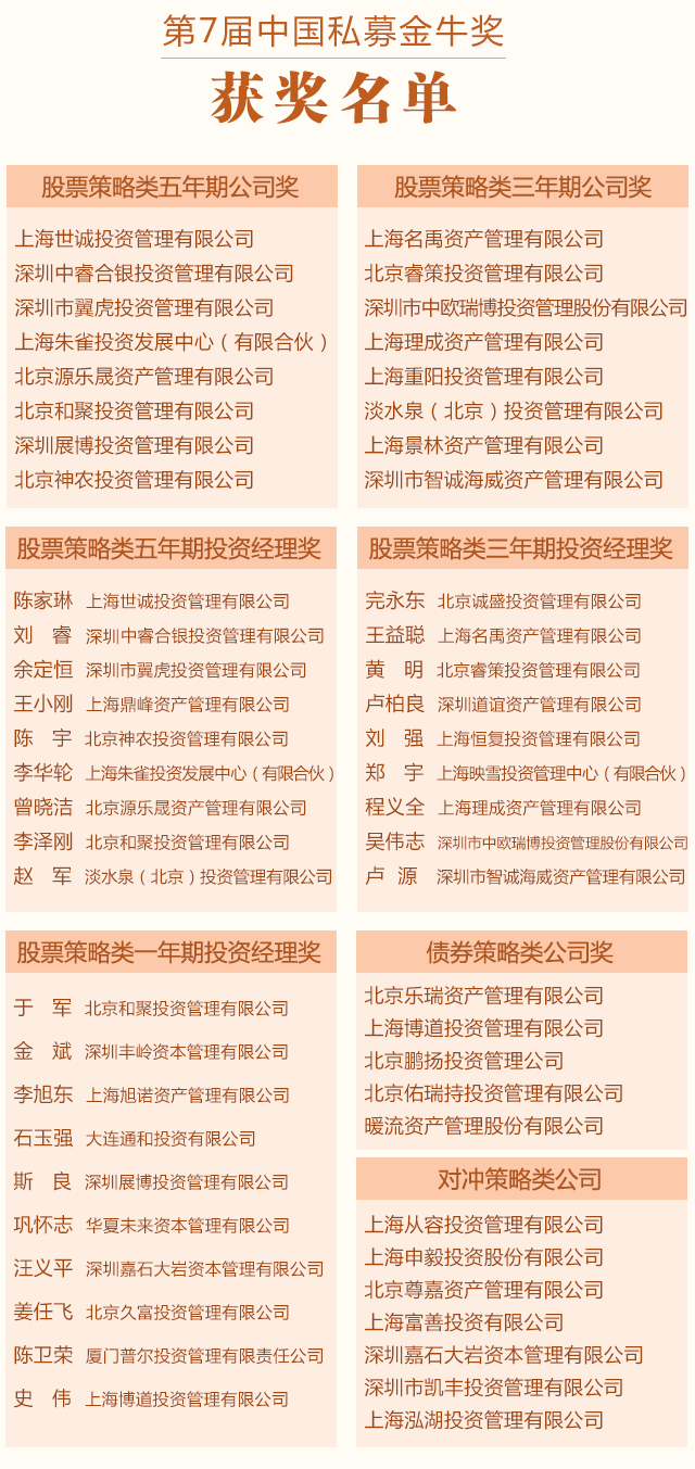 第七屆中國(guó)私募金(jīn)牛獎評選揭曉