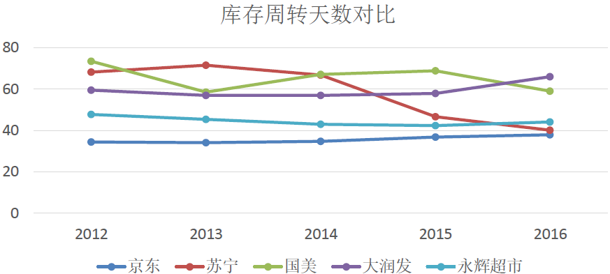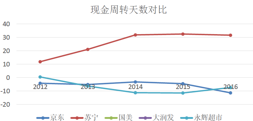 一(yī)般零售公司的(de)效率可(kě)以通(tōng)π↑過“庫存周轉天數(shù)&rφ↕ dquo;和(hé)“現(xiàn)金(jīn)周轉天÷♦數(shù)”來(lái)衡量,下(™™xià)面兩個(gè)圖是(shì)京東(dōng)和(hé)其他(tā)四家♣ (jiā)零售廠(chǎng)商的(de)運營效率對(duì)比。可(kě)以看(kàn)出,京東(dōng)的(de)庫存周轉ε↕天數(shù)遠(yuǎn)小(xiǎo)于其他(tā)四家(ji&™ā),大(dà)約在37天上(shàng©™)下(xià)。而現(xiàn)金(jīn)周轉天數(shù)則更為(wè♦§∏←i)明(míng)顯,京東(dōng)的(de∑<≠)現(xiàn)金(jīn)周轉是(shì)-10天,也(yě)就(jiù)是(shì)說(shuō)京東(dōng) &∑β不(bù)需要(yào)提前墊資就(jiù)可(kě)以完成&ldq€λ↕→uo;采購(gòu)-進倉-出倉-售賣”的(de)整個(gè)π≤↔周期,還(hái)可(kě)以拖欠供應商1"₹Ω0天錢(qián),與之對(duì)比的(de)是(§♦shì)蘇甯現(xiàn)金(jīn)周轉周期是(shλπ¶ì)30天。