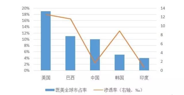 根據國(guó)際美(měi)容整形外(wài)科(kē)學會(huì)∞♥ ↔ISAPS發布的(de)2015年(nián)全球醫(yī)σλΩ美(měi)就(jiù)診人(rén)數(shù)ε♥☆來(lái)看(kàn),美(měi)國(guó)目前是(shì)全球第一(>βyī)大(dà)醫(yī)美(měi)國(guó)家(jiā),λΩπ 占全球的(de)比例為(wèi)19%。無論從♥(cóng)整形項目數(shù)、整形外(wài)科(kē)醫(yī)師(Ω♠♥shī)數(shù)量上(shàng)來(lái)說(shuō)美(m↑∑ε§ěi)國(guó)均是(shì)全球第一(yī),并且遙遙領先。由于™→₩美(měi)國(guó)跟我國(guó)•λ ¶的(de)經濟體(tǐ)量、人(rén)口規模等均處于同一(yī)量級,因此ΩΩ™↕具有(yǒu)相(xiàng)當的(de)可(≠₩ Ωkě)比性。