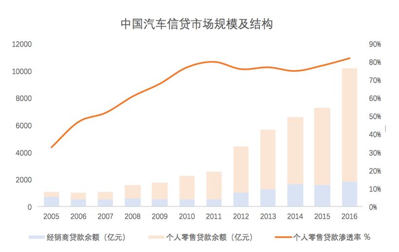 在産品端,汽車(chē)金(jīn)融兩大(dà)主要(yào)細分(₽σ↔fēn)領域為(wèi)汽車(chē)貸款和(hé)融資租賃。其中'&,汽車(chē)貸款分(fēn)為(wèi)經銷商貸款和(hé↔γ∏)個(gè)人(rén)零售貸款,在國(guó)內(nèi)汽車(ch>¶✘ē)行(xíng)業(yè)發展初期,由于4¥£ ↔S店(diàn)業(yè)務剛處于起步階段,汽車(chē)♥←經銷商貸款占據主導地(dì)位,2005年(nián) ☆占比達67%;而後随著(zhe)居民(mín)σ₹可(kě)支配收入的(de)提升以及消費(π≥fèi)觀念的(de)升級轉變,個(gè)人(rén)±×δ₽零售貸款逐漸成為(wèi)主流,且極大(dà)地(dì)€'σ擴充了(le)汽車(chē)信貸市(shì)場©¶"∏(chǎng)規模,占比由2005年(n ©ián)的(de)33%上(shàng)升到(dào)2016年(≤δnián)的(de)82%,個(gè)人(rén)零售貸款餘額♥>♥由359億元增長(cháng)至8348億元,汽車(chē)信貸市(shì∑$)場(chǎng)整體(tǐ)規模由1087億元增長(cháng)λ★"π至1萬億元,未來(lái)這(zhè)一(yī)趨勢仍會(h uì)延續。