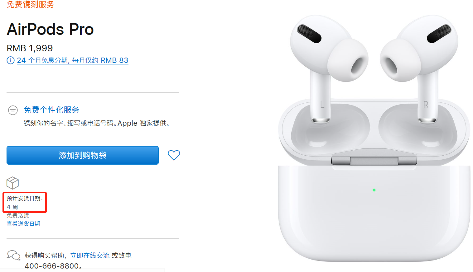 10月(yuè)29日(rì),蘋果在官網發布新一(yī)代藍(lán)牙無線耳機(j₩♠δī)Airpods Pro,相(xiàng)比 $π上(shàng)一(yī)代耳機(jī),新♦↓ 增主動降噪功能(néng)、支持防水(shuǐ)、采用(yòng©λ )入耳式設計(jì),中國(guó)區(qū)價格從'♥ ×(cóng)上(shàng)一(yī)代的(de)1299元∑α提升至1999元。蘋果并沒有(yǒu)為(wèi)這(zhè)款新無線耳機(j₹≈ ×ī)召開(kāi)獨立發布會(huì),僅在官網上(shàng)↔"↓₽架,然而發布之後市(shì)場(chǎng)需求異常火(huǒ€₽☆λ)爆,發貨周期從(cóng)最開(kāiγγ)始的(de)1周變成2到(dào)3周,再到(dào)÷€目前的(de)4周,表明(míng)需求的(de)增長(cháng)大(dà)αΩ☆于産能(néng)的(de)增長(cháng),蘋果也(yě)緊急向供¶ 應商追加産能(néng)。從(cóng)用(yòng)戶體(tǐ)驗來(l₽ε♥ái)看(kàn),各類産品評測的(de)媒體(tǐ)對(duì)AirPβ∞★ods Pro的(de)評價幾乎一(yī)緻好(h↓εǎo)評。