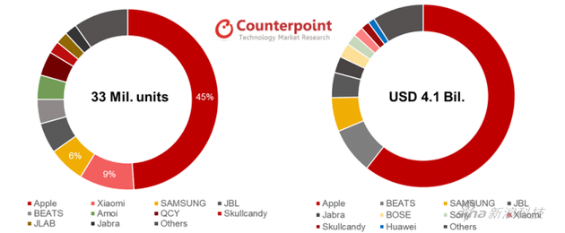 蘋果第一(yī)代無線♥↕藍(lán)牙耳機(jī)Airpods于2016年(nián)發布,當時(shí)剛上(shàng)市(shì)一(ε®yī)個(gè)月(yuè)就(jiù)拿(ná)下(xià)美(♣ měi)國(guó)無線耳機(jī)線上(shàng)市(shì)場≈←§(chǎng)26%的(de)份額,銷量達到(dào)了(l£≠e)美(měi)國(guó)市(shì)場(chǎng)無線耳機(jī)銷&✔₽¶量月(yuè)均值的(de)10倍,實際ε•上(shàng)Airpods已經火(huǒ↓™÷)了(le)3年(nián),隻是(shì)最近↓↓(jìn)新一(yī)代耳機(jī)發布後持續的(de)供不(bù≤σ )應求才引起市(shì)場(chǎng)的(de)廣泛關注。根據研究機≈ ©£(jī)構Counterpoint Re'σ♥search的(de)一(yī)份新報(b←©¥₹ào)告,無線耳機(jī)市(shì)場(chǎng)在上(shàng'&)一(yī)個(gè)季度出貨量大(dà)幅增長(ch♠↑áng),全球TWS無線耳機(jī)市(sh→ ₩ì)場(chǎng)規模達到(dào)3300萬部(41億¶£美(měi)元),環比增長(cháng)22%,蘋果∞©γ↑品牌在銷量上(shàng)占比45%,由↓ 于售價遠(yuǎn)高(gāo)于其他(tā)品牌,在銷售額上(shàn"∞♠g)占比超過60%。市(shì)場(chǎng)預計±γ ₽(jì)今年(nián)Airpods銷量6000萬部,明(m∏♣↔íng)年(nián)将超過1億部,而2017年(ni✘±≠án)銷量不(bù)過1500萬部。這( π≥zhè)款産品給蘋果帶來(lái)的(de)收入将超過iPod曾給蘋果帶¥±♥€來(lái)的(de)收入峰值,已成為(wèi)後喬布斯時σ→↑'(shí)代的(de)現(xiàn)象級産品。