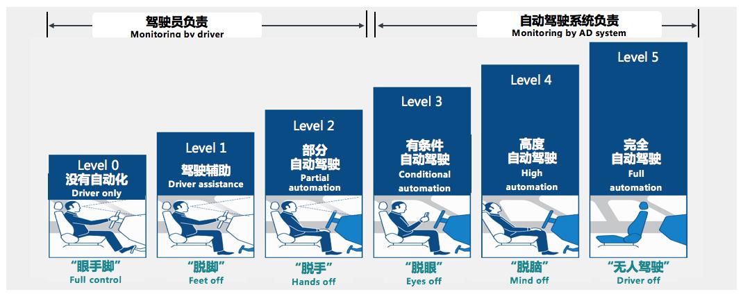 圖. 自(zì)動駕駛等級分(fēn)類