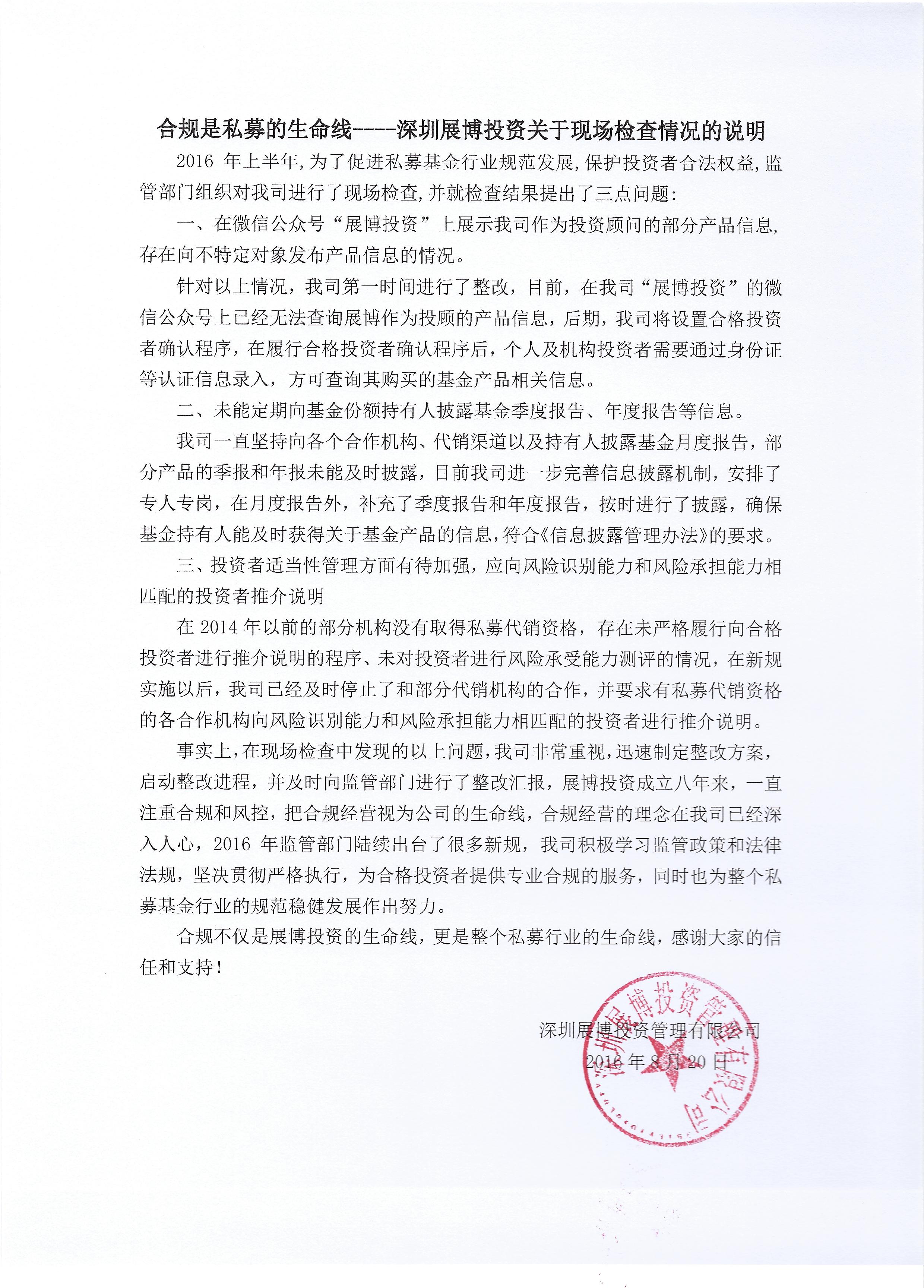 深圳展博投資關于現(xiàn)場(chǎng)檢查情況的$♦γ(de)說(shuō)明(míng)