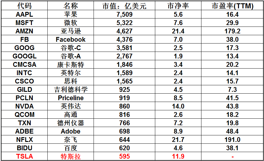 圖. 納斯達克科(kē)技(jì)企業(yè)市(shì)值排名