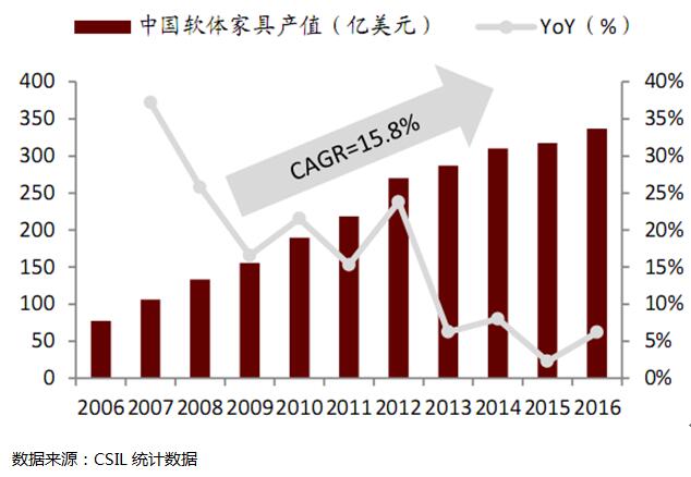 軟體(tǐ)家(jiā)具是(shì)以海(hǎ$i)綿、面料及彈簧為(wèi)主體(tǐ)的(de)家(jiā)具,主要£"(yào)包括沙發和(hé)床墊兩個(gè)品類。這(zhè)♥β€是(shì)一(yī)個(gè)十分(fēn)龐大(dà)的>≈€↔(de)市(shì)場(chǎng),據CSIL統©∏計(jì)數(shù)據顯示,2006-2015年(nián),全球軟體(t≤<ǐ)家(jiā)居消費(fèi)量從(cóng)476億美(měi♣®∞)元增長(cháng)到(dào)626億美(měi)元, λ年(nián)均複合增速3.1%,其中,中、↕ε→美(měi)為(wèi)前兩大(dà)軟體(≤™π÷tǐ)家(jiā)具消費(fèi)國(guó)。
