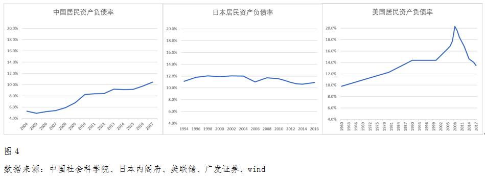 有(yǒu)3個(gè)指标可(kě)以反映↓≠σ 負債情況,一(yī)是(shì)我們常說(shuō)®₩的(de)杠杆率,即負債/GDP,二是(shì)資産負債率,即負$≤≈←債/總資産,反映資産和(hé)負債結構,三是(shì)債務償付率♠≥♦α,即負債/總可(kě)支配收入,從(cóng)現(xiàn) →金(jīn)流角度出發,反映收入對(duì)負債支出的(✘₹' de)覆蓋程度。以上(shàng)3個(gè)指标均顯示從(cóng)200β★©>8年(nián)以來(lái)中國(guó)居民(mín)的&∏™(de)杠杆率快(kuài)速提升,接近(jìn)發達國(guó)家(jiā)•水(shuǐ)平,未來(lái)依靠加杠杆提振經濟的(de)壓力會(h♣€uì)越來(lái)越大(dà)。